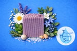Contains: Saponified Olive, Coconut and Palm oils, Lavender essential oil, Purple Mica powder